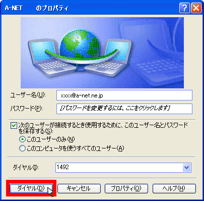 【ダイヤル】をクリックし、正常に接続できるか確認してください。